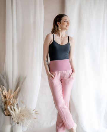 Je suis atteinte de la maladie de Crohn et j'ai le ventre qui gonfle énormément certains jours. Ce pantalon s'adapte sans que j'aie besoin de changer de taille. Et franchement, la qualité de confection est irréprochable. On sent que c'est fait avec soin.